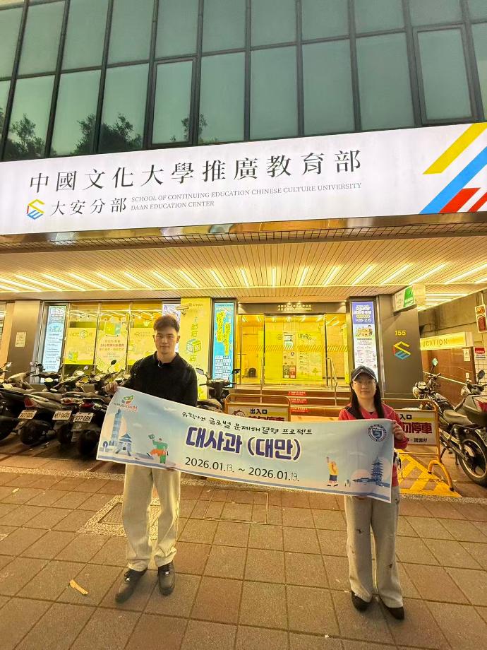 본문 시작 홈으로 커뮤니티 학과안내 교수소개 학과과정 커뮤니티 홈페이지가이드 학과사진첩 공지사항 취업정보 학과사진첩 학과행사 동아리 학생회 교우소식 학과사진첩 페이스북 트위터 프린트 겨울방학 해외 배낭여행-대만 법학과 739 2026-01-21 세 팀. 베트남의 푸꾸옥, 다낭, 그리고 대만. 법학과 4명이 신청해서 여러 곡절 끝에 2명으로 전락했지만 가까스로 출발했고 그래도 일정을 소화하고 잘 마무리함. 목록 이전2025학년도 제3회 법학과 모의재판 경연대회 다음 겨울방학 해외 배낭여행-다낭 담당부서 : 법학과 담당자 : - 연락처 : 043-649-1764 최종수정일 : 2024-10-26 만족도조사 만족도 조사 이 페이지에서 제공하는 정보에 대하여 만족하시나요? 매우만족 만족 보통 불만족 매우불만족