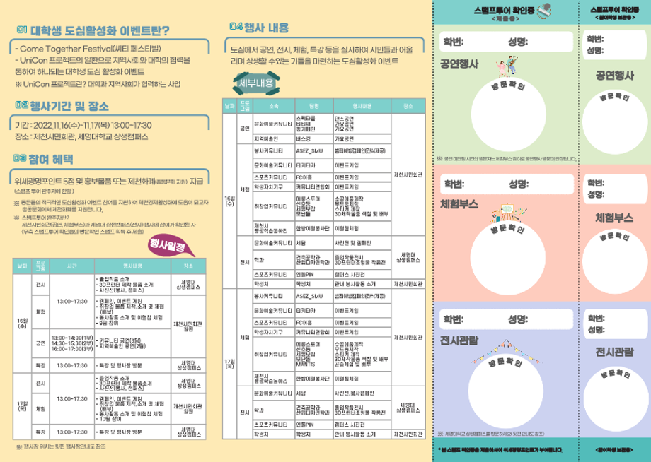 본문 시작 홈으로 학부자료실 학부소개 교육과정 학부공지게시판 학부자료실 홈페이지가이드 학부행사 및 사진게시판 학부행사 및 사진게시판 학생회 소개 학부행사 및 사진게시판 페이스북 트위터 프린트 대학생 도심활성화 이벤트 바이오제약산업학부 3314 2022-11-14 대학생 도심활성화 이벤트 목록 이전[무료] 이력서용 사진촬영 다음 세명대, 내년부터 체육 1과목 이수해야 졸업 담당부서 : 바이오제약산업학부 담당자 : - 연락처 : 043-649-1729 최종수정일 : 2024-10-26 만족도조사 만족도 조사 이 페이지에서 제공하는 정보에 대하여 만족하시나요? 매우만족 만족 보통 불만족 매우불만족