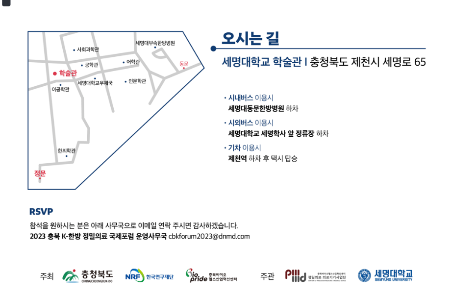 본문 시작 홈으로 학부자료실 학부소개 교육과정 학부공지게시판 학부자료실 홈페이지가이드 학부행사 및 사진게시판 학부행사 및 사진게시판 학생회 소개 학부행사 및 사진게시판 페이스북 트위터 프린트 2023 충북 K-한방 정밀의료 국제포럼 안내 바이오제약산업학부 3831 2023-02-17 2023 충북 K-한방 정밀의료 국제포럼 안내 목록 이전바이오제약산업학부 29회 학위수여식 다음 바이오제약산업학부 조순현 교수님 정년퇴임기념 특별세미나 담당부서 : 바이오제약산업학부 담당자 : - 연락처 : 043-649-1729 최종수정일 : 2024-10-26 만족도조사 만족도 조사 이 페이지에서 제공하는 정보에 대하여 만족하시나요? 매우만족 만족 보통 불만족 매우불만족