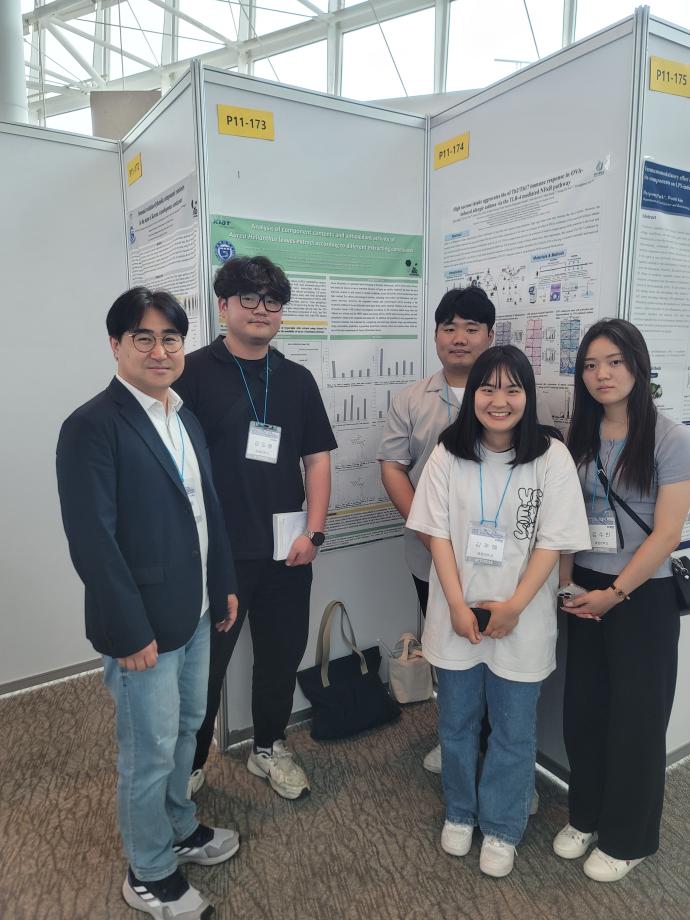 세명대학교 바이오제약산업학부 양병욱 교수 연구실에서는 제주도 국제컨벤션센터에서 개최된 2023 한국식품과학회 (2023 KoSFoST International Symposium and Annual Meeting Sustainable Food Innovation: A Bridge to the Future for All)에 참석하여 김도형(박사과정), 박정하, 남궁송(석사과정), 오병호, 김주혜, 김수빈(학부생)의 연구 결과 논문 Seasonal variation of phenolic component contents in the stems of Korean Acanthopanax senticosus과 Analysis of component contents and antioxidant activity of Aurea Helianthus leaves extract according to different extracting conditions를 발표하였다.