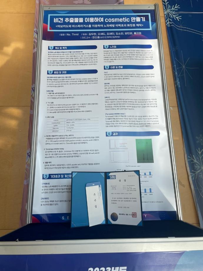 본문 시작 홈으로 학부자료실 학부소개 교육과정 학부공지게시판 학부자료실 홈페이지가이드 학부행사 및 사진게시판 학부행사 및 사진게시판 학생회 소개 학부행사 및 사진게시판 페이스북 트위터 프린트 2023학년도 세명대학교 캡스톤디자인 경진대회 우수상 수상 바이오제약산업학부 3430 2023-11-30 2023학년도 세명대학교 캡스톤디자인 경진대회 우수상 수상 우리학부 김우찬, 오세도, 김세인, 김소민, 양민영, 홍자영 학생이 제출한 비건 추출물을 이용하여 Cosmetic 만들기 <아보카도와 아스파라거스를 이용하여 노화예방 미백효과 화장품제작> 우수상을 수상하였습니다. 축하합니다. 목록 이전축하합니다.))) 오*도 학생 휴메딕스에 취업하였습니다. 다음 휴메딕스 원상호 부장 특강_현직자가 알려주는 제약품질 관리 담당부서 : 바이오제약산업학부 담당자 : - 연락처 : 043-649-1729 최종수정일 : 2024-10-26 만족도조사 만족도 조사 이 페이지에서 제공하는 정보에 대하여 만족하시나요? 매우만족 만족 보통 불만족 매우불만족
