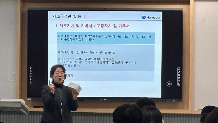 본문 시작 홈으로 학부자료실 학부소개 교육과정 학부공지게시판 학부자료실 홈페이지가이드 학부행사 및 사진게시판 학부행사 및 사진게시판 학생회 소개 학부행사 및 사진게시판 페이스북 트위터 프린트 휴메딕스 이은숙 이사 특강_현직자가 알려주는 GMP&Validation 바이오제약산업학부 3363 2023-12-08 바이오제약산업학부에서는 휴메딕스 생산실장, 제조부서책임자 이은숙 이사님을 모시고 휴메딕스 GMP 관리 현황에 대한 특강을 진행하였다. GMP가 엄격히 관리되고 있는 기업의 현황을 사례로 제약산업에서 필수적인 GMP에 대한 의미있는 교육이 진행되었다. 목록 이전휴메딕스 원상호 부장 특강_현직자가 알려주는 제약품질 관리 다음 2023학년도 전기 학위 수여식 안내 담당부서 : 바이오제약산업학부 담당자 : - 연락처 : 043-649-1729 최종수정일 : 2024-10-26 만족도조사 만족도 조사 이 페이지에서 제공하는 정보에 대하여 만족하시나요? 매우만족 만족 보통 불만족 매우불만족