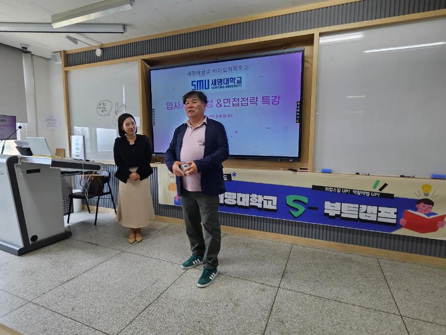 본문 시작 홈으로 학부자료실 학부소개 교육과정 학부공지게시판 학부자료실 홈페이지가이드 학부행사 및 사진게시판 학부행사 및 사진게시판 학생회 소개 학부행사 및 사진게시판 페이스북 트위터 프린트 바이오제약산업학부 2024 S-Boot Camp 시행 바이오제약산업학부 2472 2024-05-29 바이오제약산업학부에서는 5월 24-25일 S-Boot Camp를 시행하였다. 본행사는 취업을 희망하는 학생들에게 이력서, 자기소개서를 작성, 감수하여 인생 자소서를 확보하고 면접 대비 준비사항에 대하여 교육하여 우수 기업에 취업할 수 있도록 지도하는 대학지원 프로그램이다. 목록 이전바이오제약기초실험 (BUFFER 조제 실습) 다음 임병옥 교수님 고별 강연 성료 담당부서 : 바이오제약산업학부 담당자 : - 연락처 : 043-649-1729 최종수정일 : 2024-10-26 만족도조사 만족도 조사 이 페이지에서 제공하는 정보에 대하여 만족하시나요? 매우만족 만족 보통 불만족 매우불만족