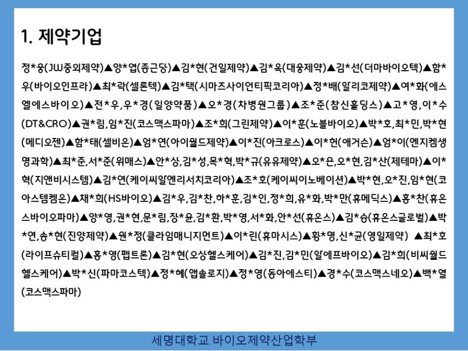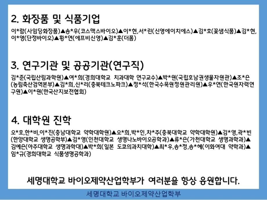 본문 시작 홈으로 학부자료실 학부소개 교육과정 학부공지게시판 학부자료실 홈페이지가이드 학부행사 및 사진게시판 학부행사 및 사진게시판 학생회 소개 학부행사 및 사진게시판 페이스북 트위터 프린트 바이오제약산업학부 취업자/진학자 현황 (2024년 9월) 바이오제약산업학부 2008 2024-09-06 바이오제약산업학부 취업자/진학자 현황 (2024년 9월) 목록 이전충북 대학생 일자리 박람회 참여 다음 "한의학과 정밀의료의 융합" 담당부서 : 바이오제약산업학부 담당자 : - 연락처 : 043-649-1729 최종수정일 : 2024-10-26 만족도조사 만족도 조사 이 페이지에서 제공하는 정보에 대하여 만족하시나요? 매우만족 만족 보통 불만족 매우불만족