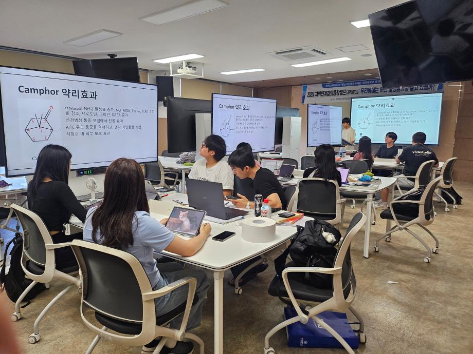 본문 시작 홈으로 학부자료실 학부소개 교육과정 학부공지게시판 학부자료실 홈페이지가이드 학부행사 및 사진게시판 학부행사 및 사진게시판 학생회 소개 학부행사 및 사진게시판 페이스북 트위터 프린트 바이오제약산업학부 여름방학 특별활동 바이오제약산업학부 2292 2025-07-24 2025년 여름방학 동안 바이오제약산업학부 학생들이 기능성 천연물 소재 개발 관련 특별활동을 하고 있습니다. 이번에는 관심있는 천연물의 구조와 생리활성 기능에 대해 팀별로 논문을 읽고 발표하는 시간을 가졌습니다. 목록 이전쳔연물조직배양 세포주은행 구축을 위한 현장실무형 2차 교육 다음 바이오제약산업학부 지역연계 창의 융합 캠프 담당부서 : 바이오제약산업학부 담당자 : - 연락처 : 043-649-1729 최종수정일 : 2024-10-26 만족도조사 만족도 조사 이 페이지에서 제공하는 정보에 대하여 만족하시나요? 매우만족 만족 보통 불만족 매우불만족