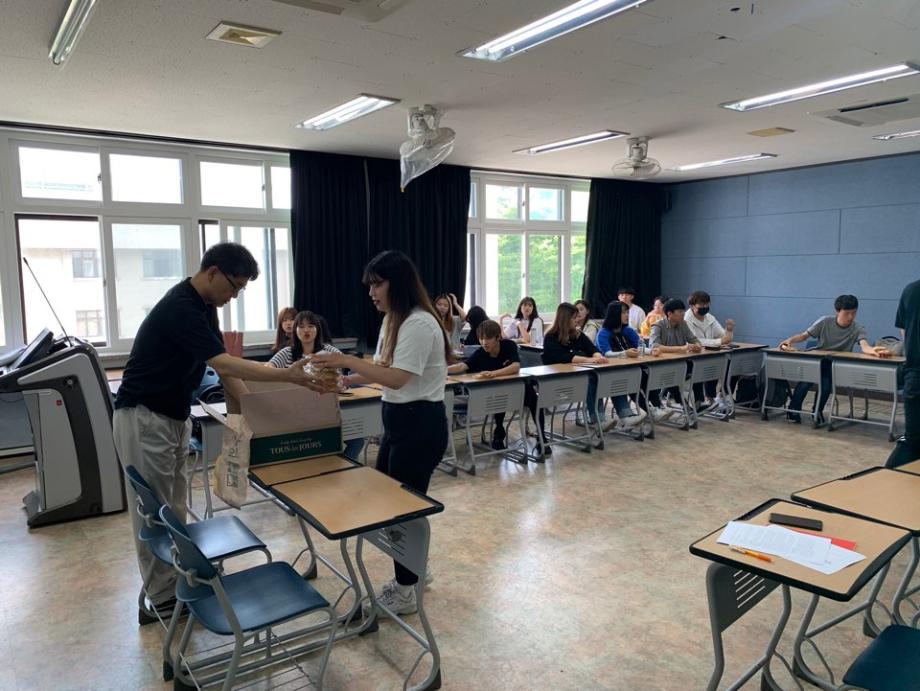 본문 시작 홈으로 커뮤니티 학부소개 전공 소개 학사안내 커뮤니티 홈페이지가이드 사진게시판 공지사항 취업정보 사진게시판 학부자료실 학부 학생회 학부소식 사진게시판 페이스북 트위터 프린트 2019학년도 국제언어문화학부 기말고사 간식 배부사진 국제언어문화학부 4644 2019-06-19 2019학년도 1학기 기말고사 진행 중일때 간식을 배부하는 시간을 가졌습니다. 남은 과목도 꼭 잘 보시고 좋은 결과있기 차원에서 학부에서 주는 간식을 배부해주었습니다. 기말고사 화이팅하고 즐거운 여름방학을 보내세요~ 목록 이전2019 국제언어문화학부 성년의날 다음 2019학년도 단기어학 및 현장체험 (일본어) 활동사진 담당부서 : 국제언어문화학부 담당자 : - 연락처 : 043-649-1761 최종수정일 : 2024-10-26 만족도조사 만족도 조사 이 페이지에서 제공하는 정보에 대하여 만족하시나요? 매우만족 만족 보통 불만족 매우불만족