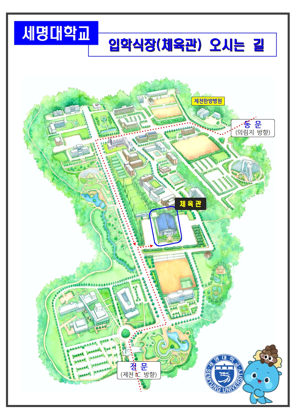 ★ 2026학년도 신입생 입학식 안내 ① 일시: 2026. 2. 25.(수) 10:00 ~ ② 장소: 세명체육관 (충북 제천시 세명로 65) |