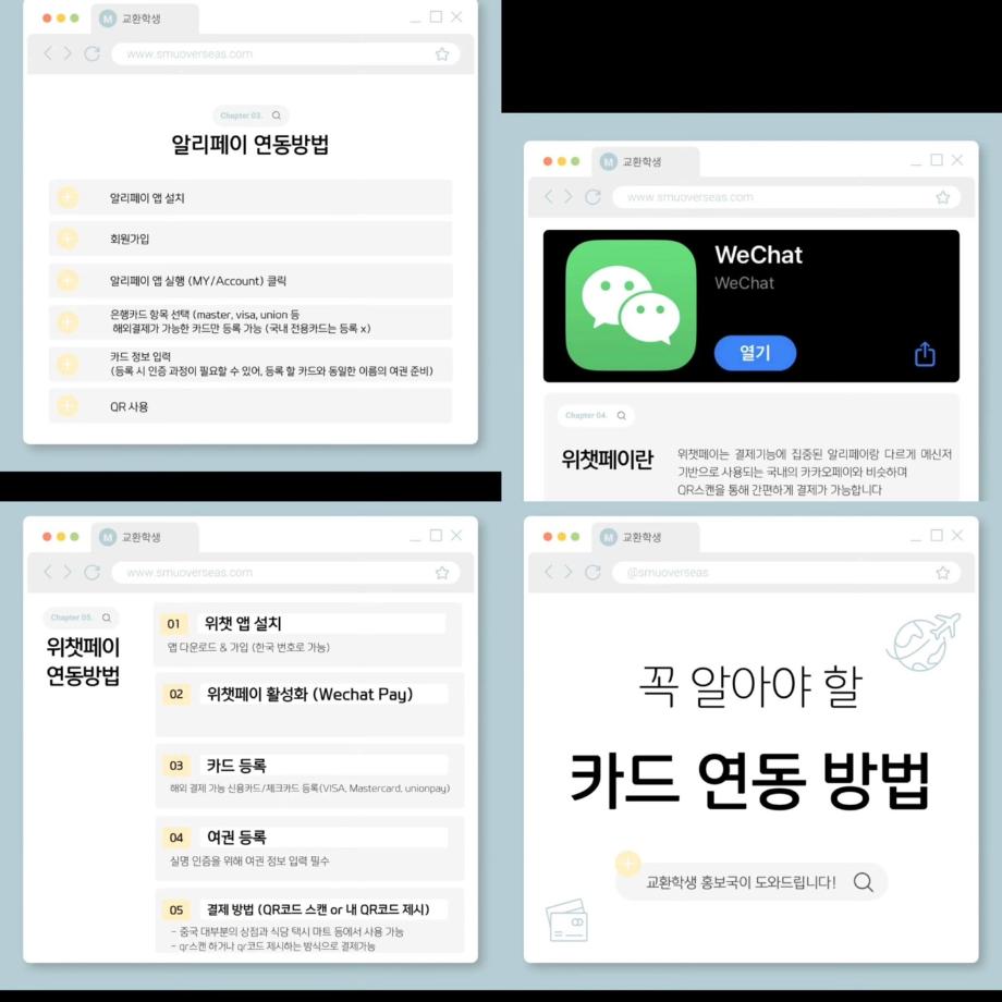 본문 시작 홈으로 커뮤니티 학과소개 입학정보 교과과정 커뮤니티 홈페이지가이드 포토갤러리 SNS 소통 공간 포토갤러리 공지사항 동아리 포토갤러리 페이스북 트위터 프린트 중국 카드 연동 방법 항공서비스학과 2306 2025-05-05 안녕하십니까 세명대학교 항공서비스학과 온라인 홍보국 💙푸르미르💙입니다. 오늘은 중국 교환학생에서 꼭 필요한 카드연동 방법 카드뉴스를 가져와보았습니다 😊 많은 도움이 되길 바랍니다!! 소중한 꿈을 품고 그 누구보다 높이 오를 여러분을 저희 "푸르미르" 가 항상 응원하겠습니다 ✈💙 궁금한 사항이 있으시다면 언제든지 SNS로 연락 주십시오 💬 #세명대학교 #항공서비스학과 #세명대 #항공과 #푸르미르 #카드연동 #카드 #중국 #교환학생 목록 이전5월 다이어리 다음 김포공항 국립박물관 견학
