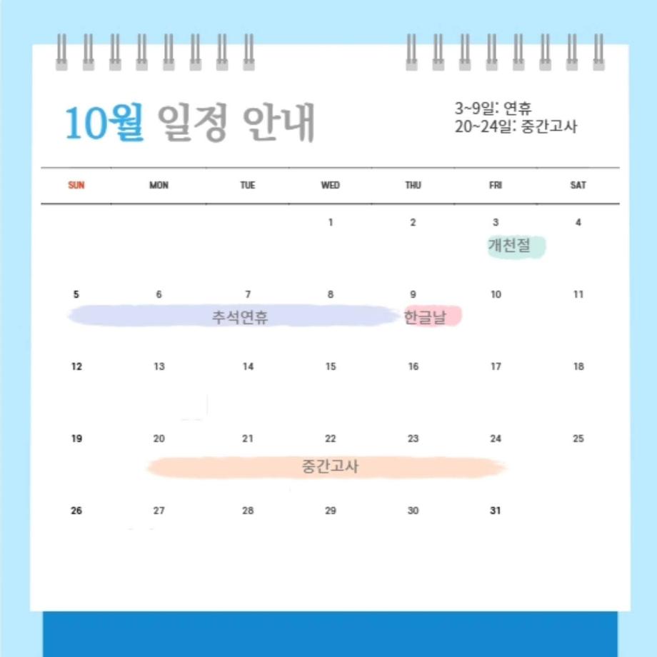 본문 시작 홈으로 커뮤니티 학과소개 입학정보 교과과정 커뮤니티 홈페이지가이드 포토갤러리 SNS 소통 공간 포토갤러리 공지사항 동아리 포토갤러리 페이스북 트위터 프린트 10월 다이어리 항공서비스학과 1736 2025-10-06 안녕하십니까 세명대학교 항공서비스학과 온라인 홍보국 💙푸르미르💙입니다. 10월에는 추석연휴와 중간고사가 있습니다! 확인하시고 일정에 착오 없으시길 바라겠습니다 😊 즐거운 연휴 보내세요🙇♂️ 소중한 꿈을 품고 그 누구보다 높이 오를 여러분을 저희 "푸르미르" 가 항상 응원하겠습니다 ✈💙 궁금한 사항이 있으시다면 언제든지 SNS로 연락 주십시오 💬 #세명대학교 #항공서비스학과 #세명대 #항공과 #푸르미르 #다이어리 목록 다음 제주항공 에듀윙 Advanced class 다음 가을 맞이 일상 사진