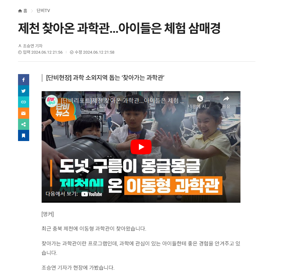 최근 충북 제천에 이동형 과학관이 찾아왔습니다.