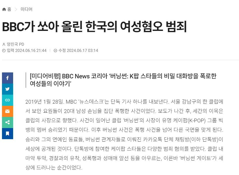 BBC가 쏘아 올린 한국의 여성혐오 범죄