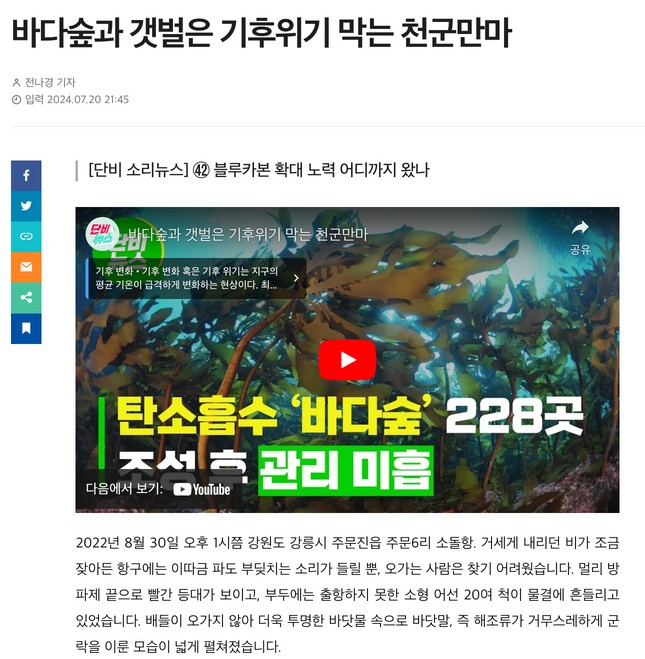 바다숲과 갯벌은 기후위기 막는 천군만마