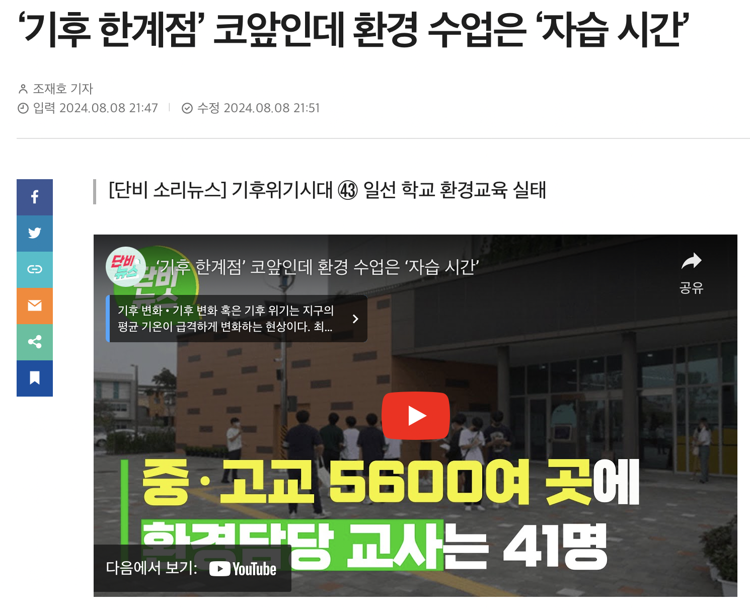 ‘기후 한계점’ 코앞인데 환경 수업은 ‘자습 시간’
