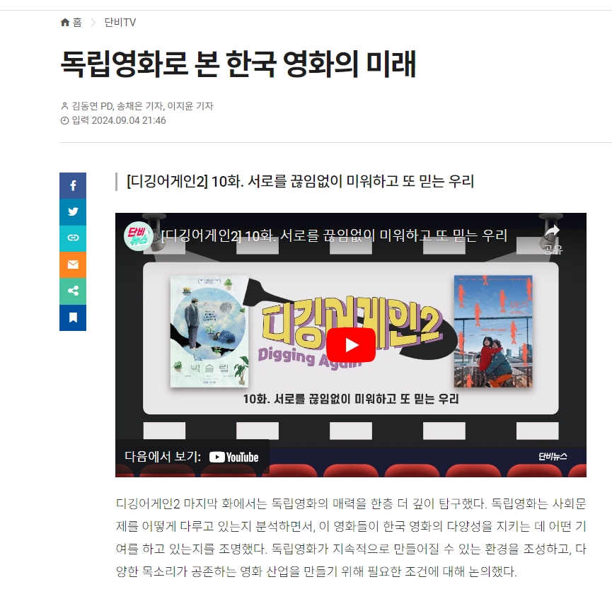 디깅어게인2 마지막 화에서는 독립영화의 매력을 한층 더 깊이 탐구했다.