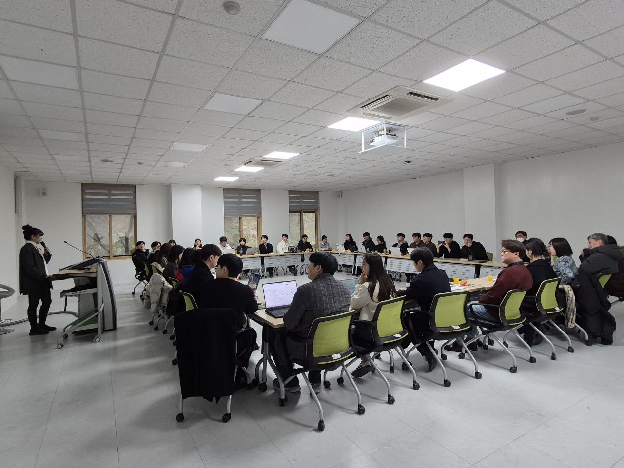 1층 강의실을 꽉 채워, 재학생들이 모였습니다.