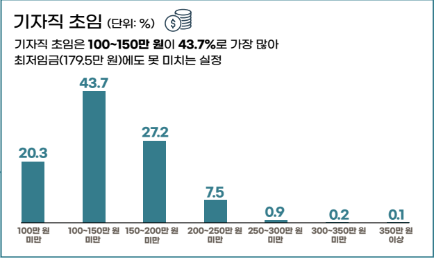 기자직 초임 급여 '100~150만원 미만' 43.7%