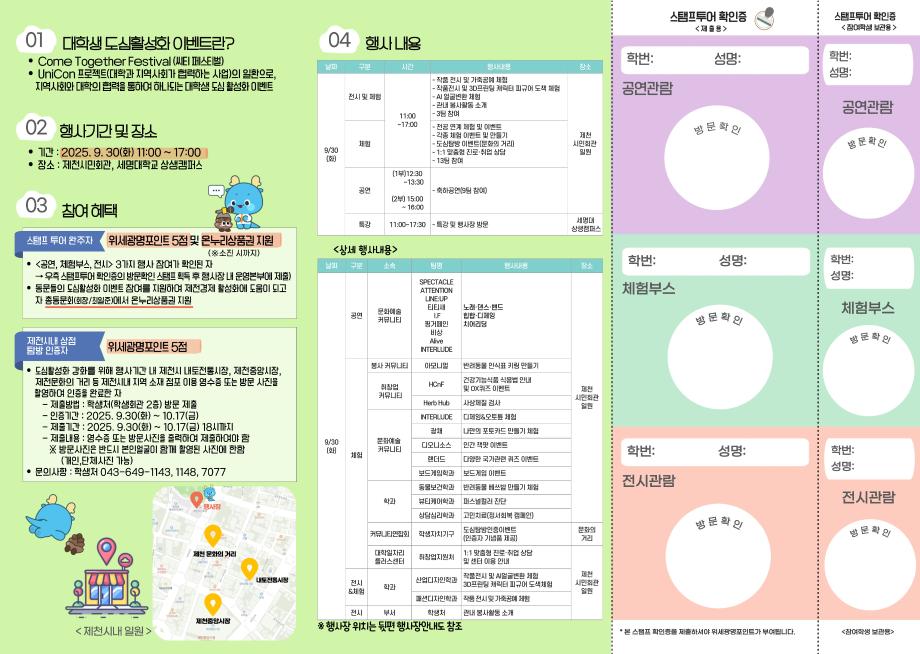 본문 시작 홈으로 학과생활 학과소개 교수소개 교과과정 학과생활 홈페이지가이드 사진게시판 공지사항 사진게시판 전공자료실 동아리 학과행사 사진게시판 페이스북 트위터 프린트 [학생처] 2025 대학생 도심활성화 이벤트[Come Together Festival(씨티페스티벌)] 개최 산업디자인학과 355 2025-09-24 학생처 목록 이전[기념품] 아트앤산업디자인학과 기념품 제작_에코백 다음 [세명대] 청룡체전 체험부스_산디과 동아리 활동 담당부서 : 산업디자인학과 담당자 : - 연락처 : 043-649-1436 최종수정일 : 2024-10-26 만족도조사 만족도 조사 이 페이지에서 제공하는 정보에 대하여 만족하시나요? 매우만족 만족 보통 불만족 매우불만족