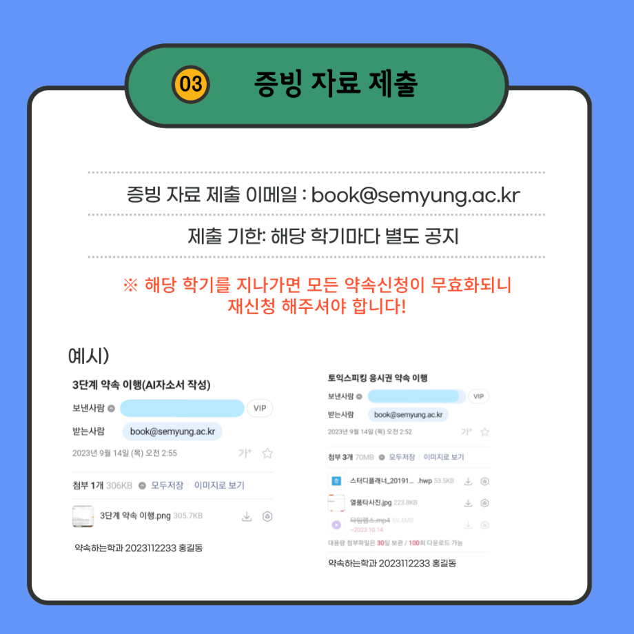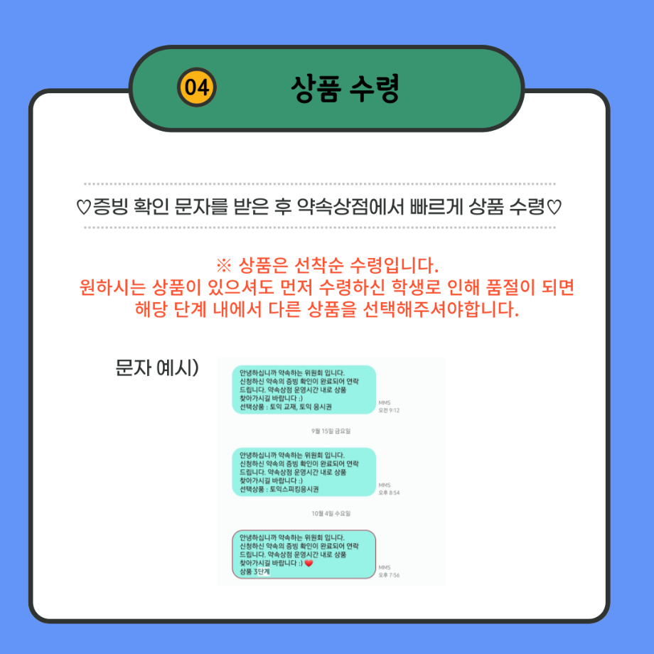 본문 시작 홈으로 포토갤러리 학생위원회 개요 학생위원회 소개 공지사항 활동결과 홈페이지가이드 포토갤러리 페이스북 트위터 프린트 [약속하는 위원회] 함께보는 약속상점 이용안내 학술정보원 2351 2023-11-22 약속상점 이용방법입니다. 목록 이전[꽃피는 위원회] 플라워트리만들기 다음 [ 통하는 위원회] MZ옷코디콘테스트 담당부서 : 장학복지팀 담당자 : - 연락처 : 043-649-1142 최종수정일 : 2024-10-26 만족도조사 만족도 조사 이 페이지에서 제공하는 정보에 대하여 만족하시나요? 매우만족 만족 보통 불만족 매우불만족