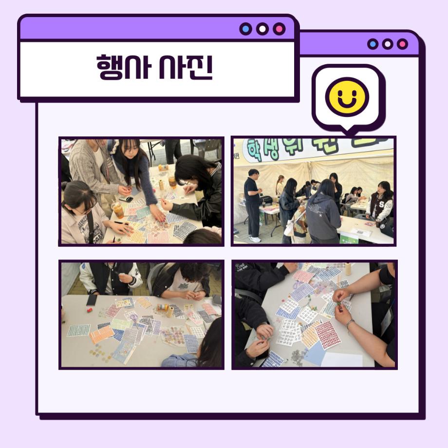 본문 시작 홈으로 포토갤러리 학생위원회 개요 학생위원회 소개 공지사항 활동결과 홈페이지가이드 포토갤러리 페이스북 트위터 프린트 [꽃피는 위원회] 행운을 가져다주는 책갈피 만들기 학생처 1532 2024-05-13 < 행운을 가져다주는 책갈피 만들기 > 일시 : 2024.05.09(목) 11:00~14:00 장소 : 학생회관 앞 광장 학생위원회 부스 참여인원 : 교내 구성원 144명 참여 꽃피는 위원회 행사에 참여해주신 본교 구성원 모두 감사드립니다. 추후 행사도 많은 관심부탁드립니다. 목록 이전[꽃피는 위원회] 벚꽃사진 콘테스트 결과 다음 [생각하는 위원회] You Think?(유띵크) 청룡체전부스 담당부서 : 장학복지팀 담당자 : - 연락처 : 043-649-1142 최종수정일 : 2024-10-26 만족도조사 만족도 조사 이 페이지에서 제공하는 정보에 대하여 만족하시나요? 매우만족 만족 보통 불만족 매우불만족