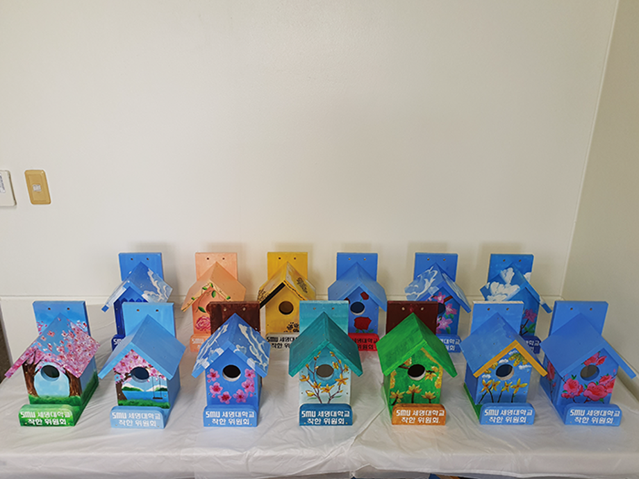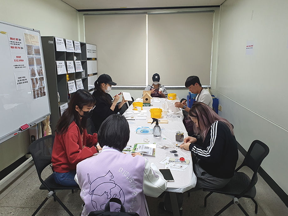 본문 시작 홈으로 포토갤러리 학생위원회 개요 학생위원회 소개 공지사항 활동결과 홈페이지가이드 포토갤러리 페이스북 트위터 프린트 [착한 위원회] 2024-1학기 포롱포롱 공방 운영 결과 학생처 1484 2024-05-13 [착한 위원회] 2024-1학기 포롱포롱 공방 운영 결과 1. 운영기간 : 2024년 4월 29일(월)~5월 3일(금) 2. 운영장소 : 본교 학생회관 519호 3. 운영내용 - 착한 위원회 새집 제작(꽃을 담은 새집 만들기) - 본교 구성원 나만의 작은 숲(미니 테라리움) DIY 체험 4. 참여인원 : 43명 - 착한 위원회 위원 13명 - 체험자 30명 (재학생 20명, 교직원 10명) 5. 새집 제작 수량 : 13개 목록 이전[약속하는 위원회] <약속편지> 다음 [착한 위원회] 제5회 이리오새 페스티벌 시행 결과 담당부서 : 장학복지팀 담당자 : - 연락처 : 043-649-1142 최종수정일 : 2024-10-26 만족도조사 만족도 조사 이 페이지에서 제공하는 정보에 대하여 만족하시나요? 매우만족 만족 보통 불만족 매우불만족