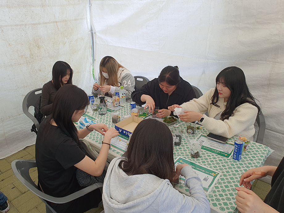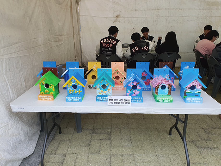 본문 시작 홈으로 포토갤러리 학생위원회 개요 학생위원회 소개 공지사항 활동결과 홈페이지가이드 포토갤러리 페이스북 트위터 프린트 [착한 위원회] 제5회 이리오새 페스티벌 시행 결과 학생처 1702 2024-05-13 1. 행사일시 : 2024년 5월 8일(수), 14시~17시 2. 행사장소 : 본교 학생회관 앞 착한 위원회 부스 3. 행사내용 - 꽃을 담은 새집 전시회 (착한 위원회 제작) - 본교 구성원 나만의 작은 숲(미니 테라리움) DIY 체험 4. 참여인원 : 83명 - 착한 위원회 위원 13명 - 체험자 70명 (재학생 67명, 교직원 3명) 목록 이전[착한 위원회] 2024-1학기 포롱포롱 공방 운영 결과 다음 [벗어나는 위원회] 호기심 탐험 활동 결과 담당부서 : 장학복지팀 담당자 : - 연락처 : 043-649-1142 최종수정일 : 2024-10-26 만족도조사 만족도 조사 이 페이지에서 제공하는 정보에 대하여 만족하시나요? 매우만족 만족 보통 불만족 매우불만족