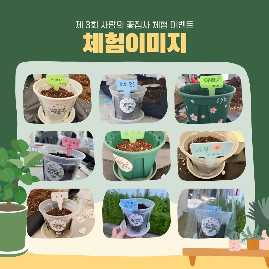 본문 시작 홈으로 포토갤러리 학생위원회 개요 학생위원회 소개 공지사항 활동결과 홈페이지가이드 포토갤러리 페이스북 트위터 프린트 [꽃피는 위원회] 제 3회 사랑의 꽃집사 체험이벤트 학생처 1404 2024-05-23 제 3회 사랑의 꽃집사 체험 이벤트 일시 : 2024.05.23(목) 12:00 ~ 15:00 장소 : 학생회관 앞 광장 참여인원 : 본교 구성원 114명 (꽝 15명, 채소씨앗 30명, 꽃씨앗 67명) 참여한 구성원분들의 식집사 체험 성공을 기원합니다. 목록 이전[맛있는 위원회] 맛그램 틀렸그램 다음 [생각하는 위원회] 대형 현수막 문구 공모전 '준비 시~작' 담당부서 : 장학복지팀 담당자 : - 연락처 : 043-649-1142 최종수정일 : 2024-10-26 만족도조사 만족도 조사 이 페이지에서 제공하는 정보에 대하여 만족하시나요? 매우만족 만족 보통 불만족 매우불만족