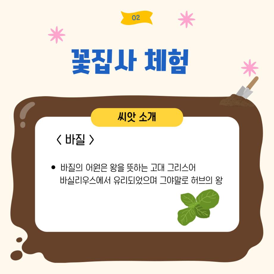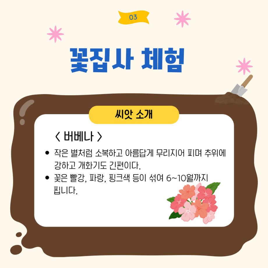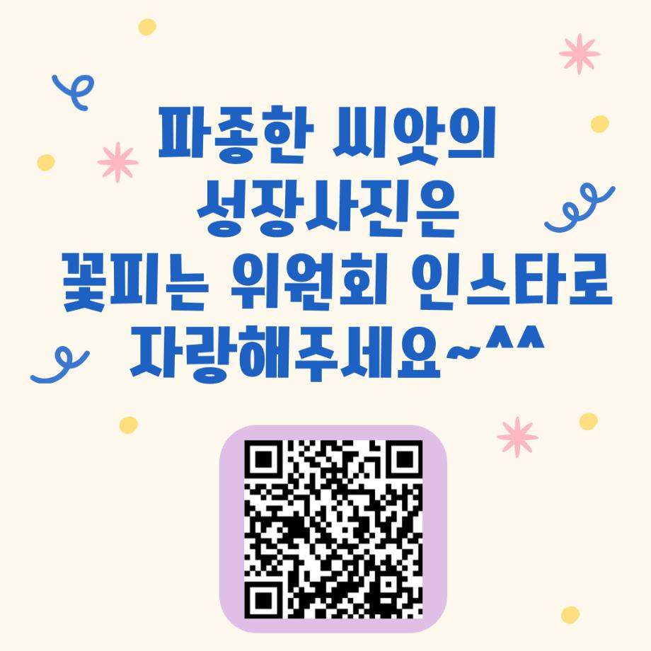 본문 시작 홈으로 포토갤러리 학생위원회 개요 학생위원회 소개 공지사항 활동결과 홈페이지가이드 포토갤러리 페이스북 트위터 프린트 [꽃피는 위원회] 제 4회 사랑의 꽃집사 체험이벤트 학생처 962 2025-05-28 [꽃피는 위원회] 제 4회 사랑의 꽃집사 체험이벤트 1. 일시: 5월 22일 12시~15시 2. 장소: 학생회관 앞 광장 3. 참여인원: 본교 구성원 114명 참여 4. 행사내용: 랜덤돌리기를 통한 씨앗 선정 후 씨앗 파종 진행, 참여완료자에 한해 만족도 조사 실시 5. 행사 만족도 조사 : 4.9/5.0 목록 이전[약속하는 위원회] 달려라 에코레이서 다음 [생각하는 위원회] 대형 현수막 문구 공모전 'Hear, 위로' 담당부서 : 장학복지팀 담당자 : - 연락처 : 043-649-1142 최종수정일 : 2024-10-26 만족도조사 만족도 조사 이 페이지에서 제공하는 정보에 대하여 만족하시나요? 매우만족 만족 보통 불만족 매우불만족