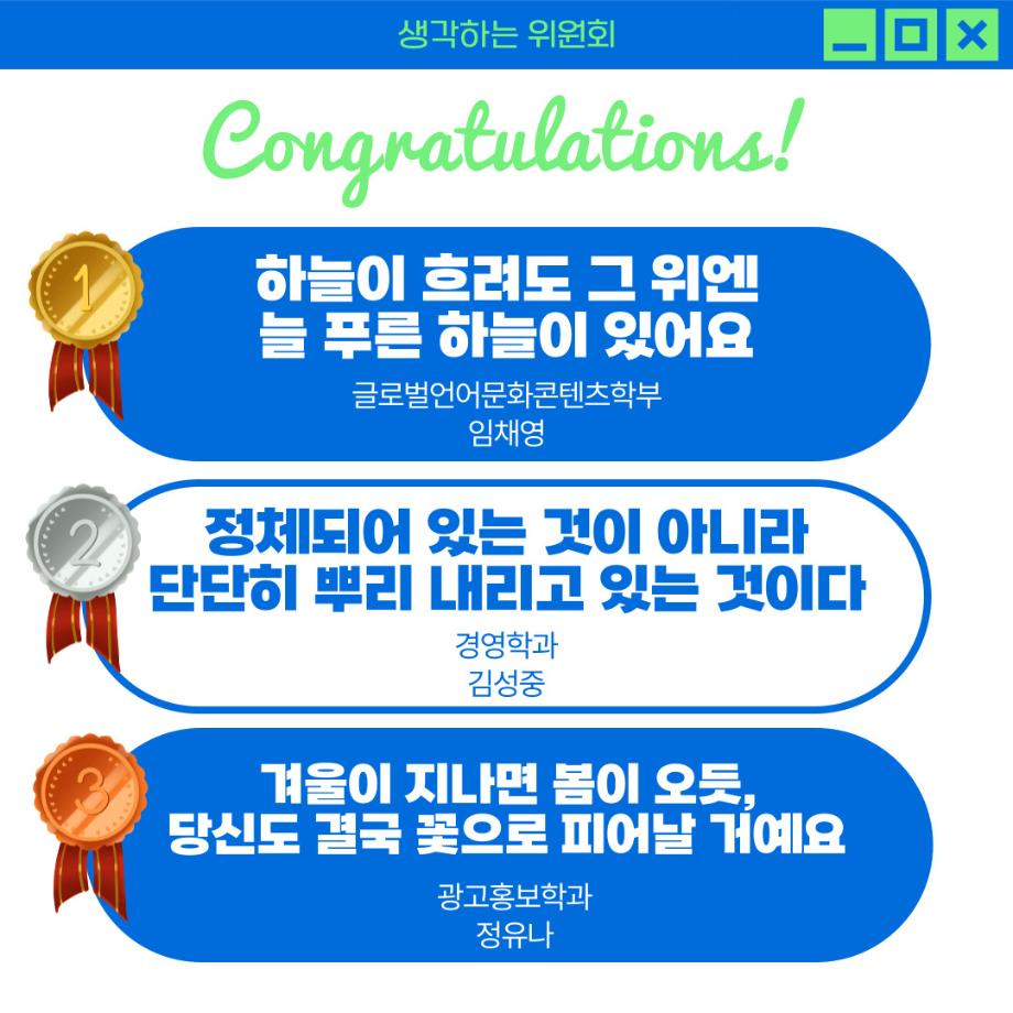 시상자 분들 모두 축하드리며, 참여자분들께 감사드립니다!