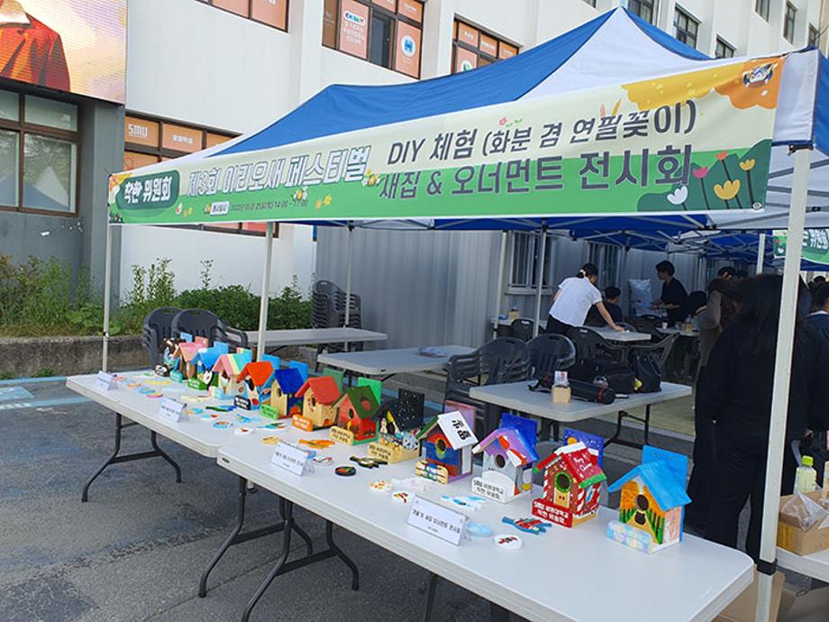 본문 시작 홈으로 포토갤러리 학생위원회 개요 학생위원회 소개 공지사항 활동결과 홈페이지가이드 포토갤러리 페이스북 트위터 프린트 [착한위원회] 제 3회 이리오새페스티벌 학생처 2450 2023-05-26 세명대학교의 재미있는 경험을 위한 학생위원회 중 '착한 위원회'가 지난 5월 25일(목) 제3회 이리오새 페스티벌을 개최했다. 제3회 이리오새 페스티벌에서는 착한 위원회와 포롱포롱 공방 체험자가 제작한 새집 및 오너먼트 전시회, DIY 체험(화분 겸 연필꽂이 만들기)이 진행되었다. 전시회에서는 새집 및 오너먼트 51개가 전시되었으며, DIY 체험에는 100명 이상의 재학생이 참여하여 재미있는 경험의 기회 공유로 캠퍼스에 활기를 불어넣었다. 목록 이전[춤추는 위원회] 제 8회 커뮤니티 페스티벌 특별공연 이전[통하는 위원회] MZ나들이 담당부서 : 장학복지팀 담당자 : - 연락처 : 043-649-1142 최종수정일 : 2024-10-26 만족도조사 만족도 조사 이 페이지에서 제공하는 정보에 대하여 만족하시나요? 매우만족 만족 보통 불만족 매우불만족