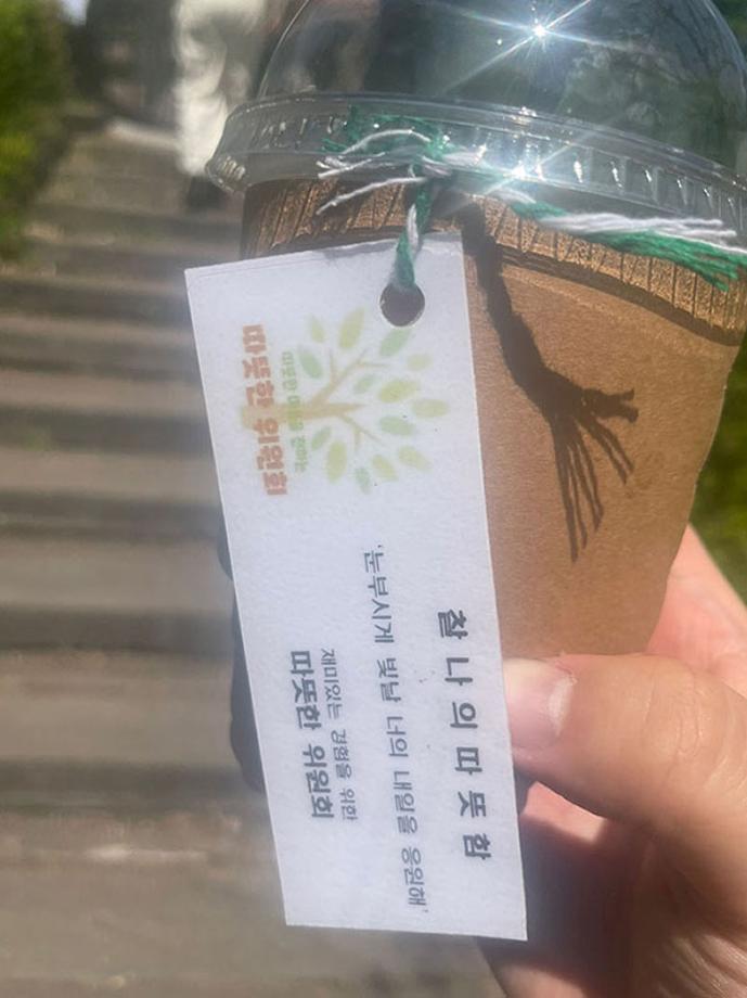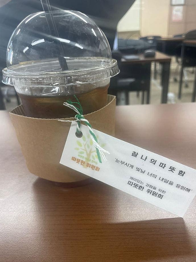 - 따뜻한 문구 제작(책갈피)하여 컵홀더와 함께 나눔