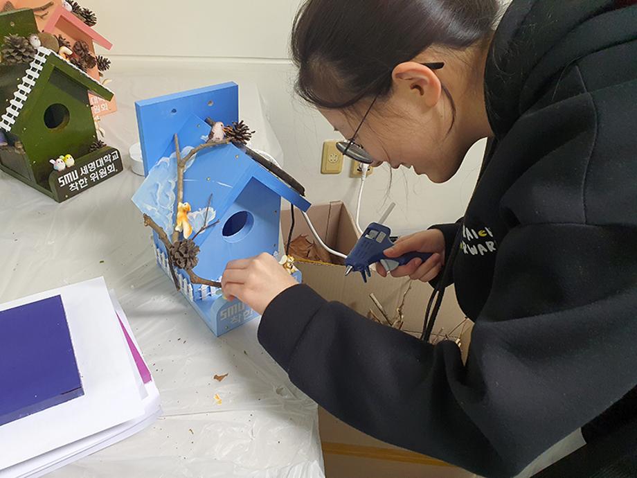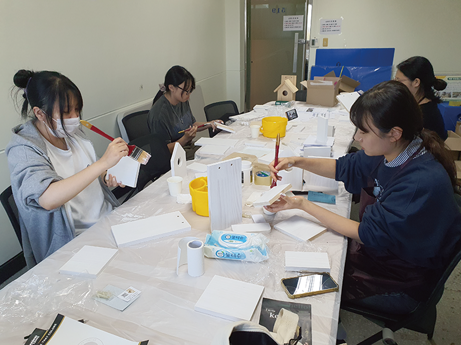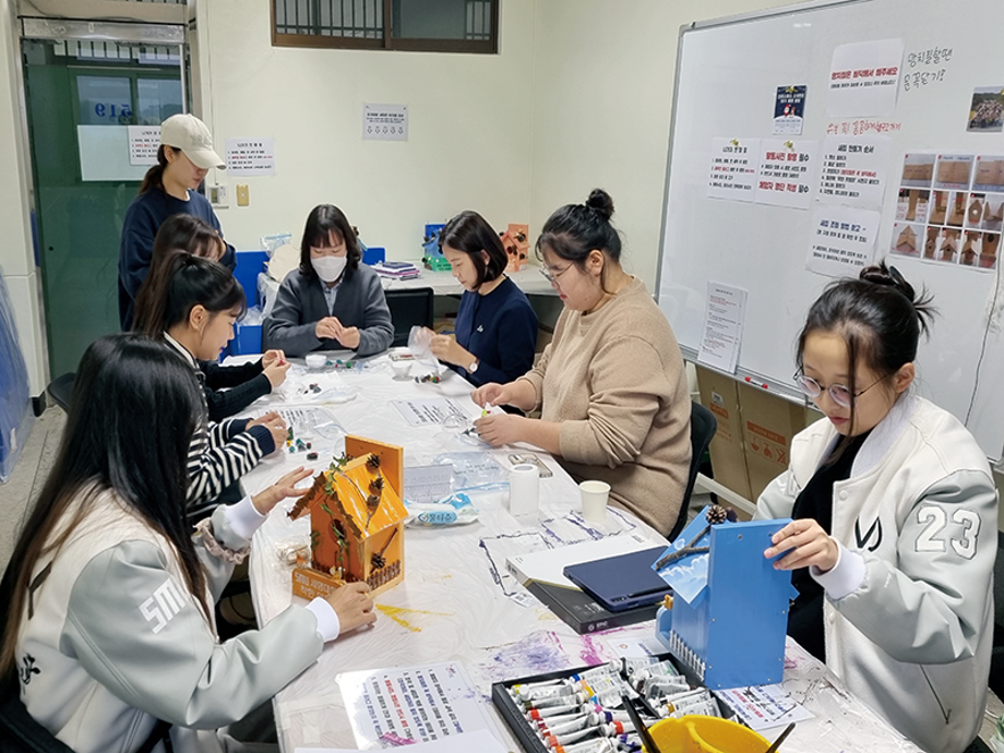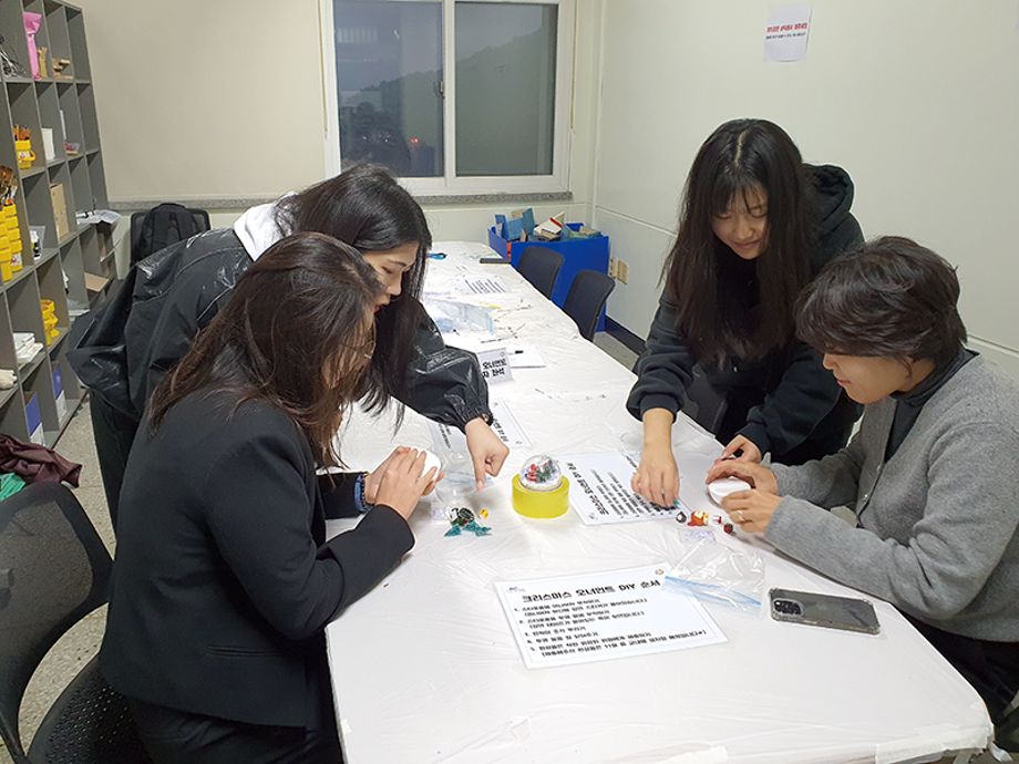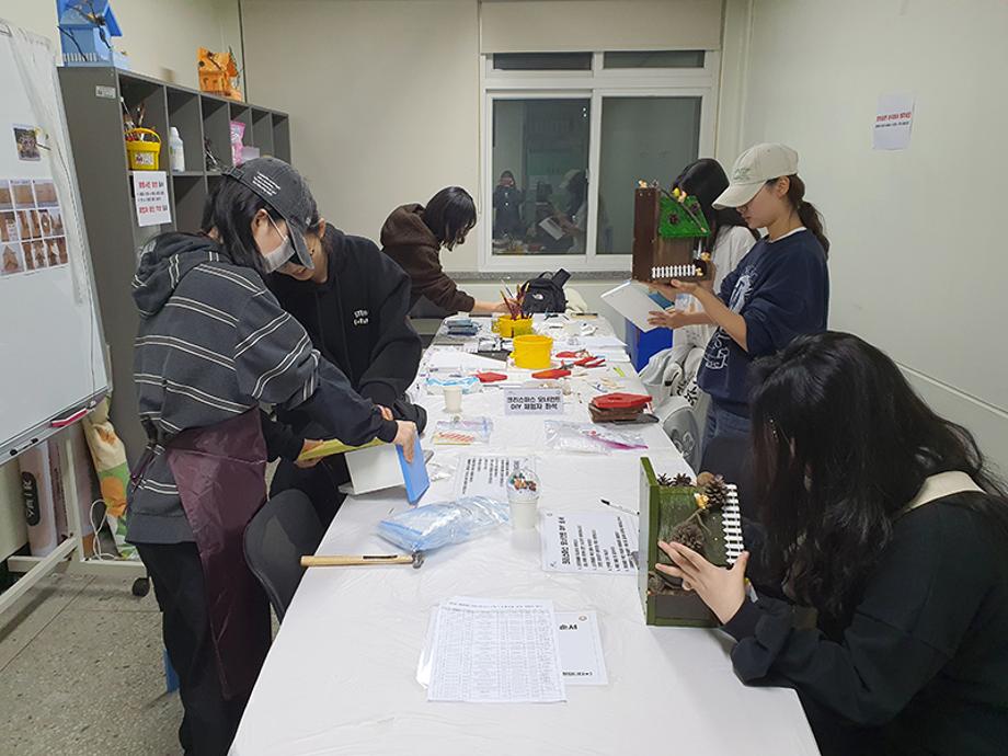 본문 시작 홈으로 포토갤러리 학생위원회 개요 학생위원회 소개 공지사항 활동결과 홈페이지가이드 포토갤러리 페이스북 트위터 프린트 [착한 위원회] 2023-2학기 포롱포롱 공방 운영 결과 학생처 3931 2023-11-02 [착한 위원회] 2023-2학기 포롱포롱 공방 운영 결과 1. 운영기간 : 2023년 10월 2. 운영장소 : 학생회관 519호 3. 운영내용 - 자연물과 미니어처를 활용한 새집 만들기 - 미니어처를 활용한 크리스마스 오너먼트 만들기 체험 4. 참여인원 : 54명 - 위원 12명, 재학생 24명, 교직원 18명 5. 제작수량 : 새집 14개, 크리스마스 오너먼트 54개 - 11월 중 교내 숲에 설치 예정 목록 이전[용감한위원회]참깨마켓 및 용감한 창업자 부스 운영 다음 [밀어주는 위원회] 2023년 2학기. 두 번째 행사 담당부서 : 장학복지팀 담당자 : - 연락처 : 043-649-1142 최종수정일 : 2024-10-26 만족도조사 만족도 조사 이 페이지에서 제공하는 정보에 대하여 만족하시나요? 매우만족 만족 보통 불만족 매우불만족