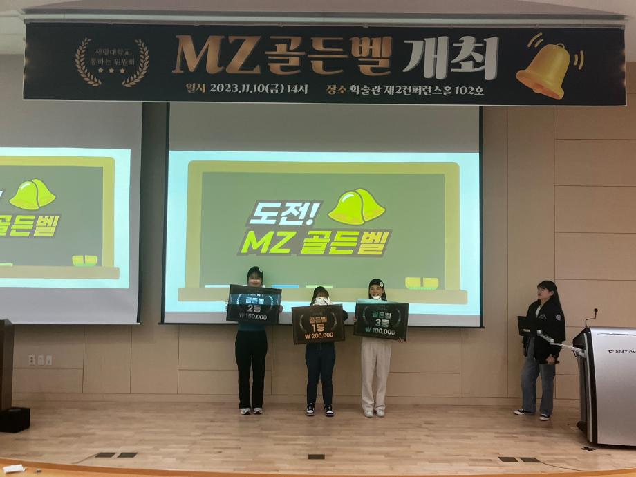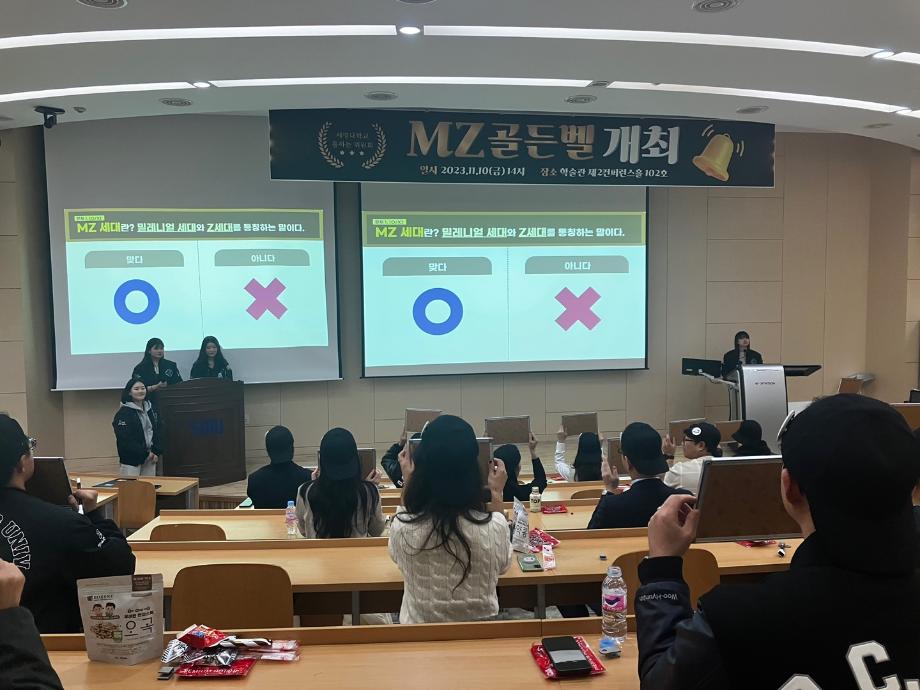 본문 시작 홈으로 포토갤러리 학생위원회 개요 학생위원회 소개 공지사항 활동결과 홈페이지가이드 포토갤러리 페이스북 트위터 프린트 [통하는위원회] 통하는 위원회 < MZ골든벨 > 2600 2023-11-22 1. 행사일시 : 23년 11월 10일(금) 14시~16시 2. 행사장소 : 학술관 102호 3. 행사개요 : 세대 문화를 주제로 미니 골든벨을 개최하여 교직원과 재학생들이 서로의 문화를 배우고 소통할 수 있는 계기 마련 4. 행사내용 - 다양한 세대 문제를 출제하여 서로의 문화를 배우고 소통함 - 참여자 10명에게 랜덤 MZ 상품 증정 - 최종 3인에게 상금 증정 5. 참여인원 : 28명 목록 이전[ 통하는 위원회] MZ옷코디콘테스트 다음 [통하는 위원회] 최종보고회 부스 담당부서 : 장학복지팀 담당자 : - 연락처 : 043-649-1142 최종수정일 : 2024-10-26 만족도조사 만족도 조사 이 페이지에서 제공하는 정보에 대하여 만족하시나요? 매우만족 만족 보통 불만족 매우불만족