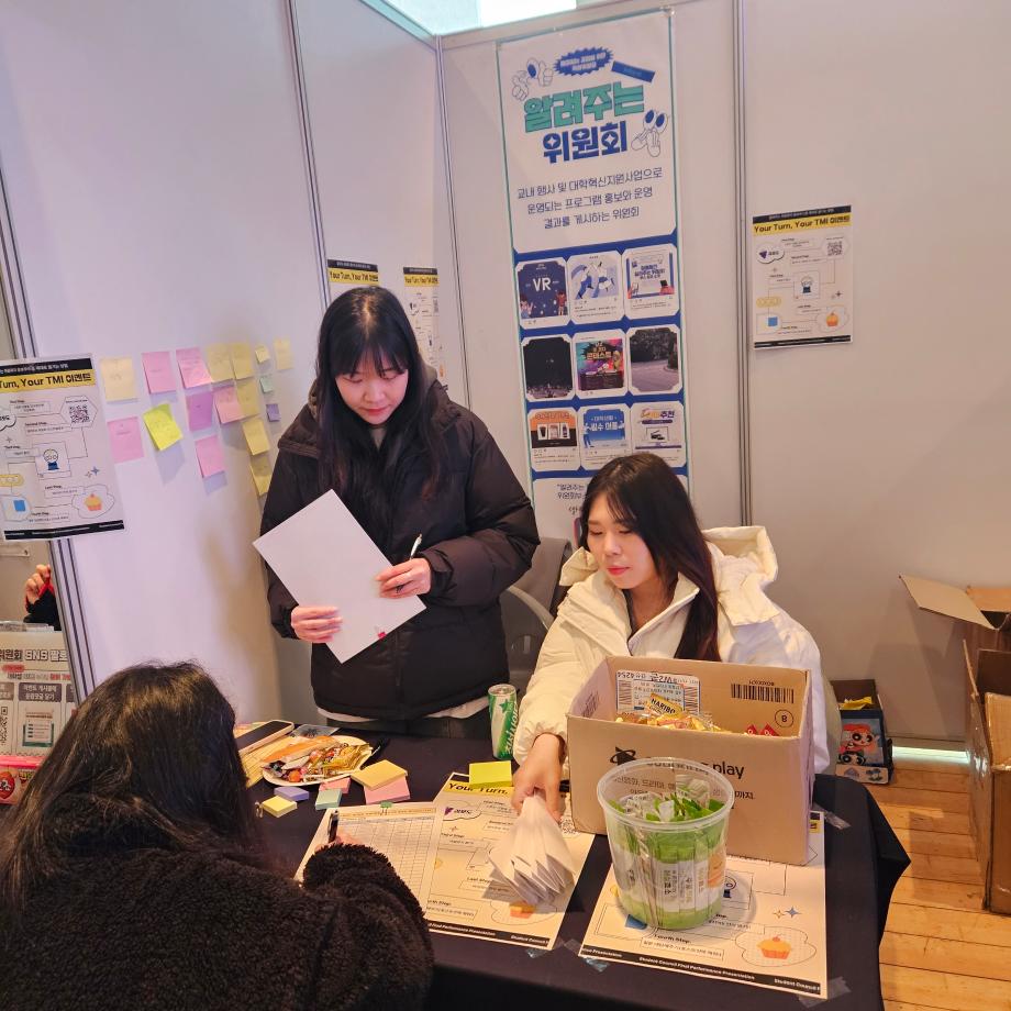본문 시작 홈으로 포토갤러리 학생위원회 개요 학생위원회 소개 공지사항 활동결과 홈페이지가이드 포토갤러리 페이스북 트위터 프린트 [알려주는 위원회] 최종보고회 부스운영 대학혁신지원단 2657 2023-11-22 <알려주는 위원회 활동 결과 내용> [알려주는 위원회] 알려주는 위원회 Your Turn, Your TMI 역질문 이벤트 1. 행사일시: 2023년 11월 16일(목) 11:30~18:00 -제2회 학생위원회 최종보고회 기간 2. 행사장소: 학술관 1층 로비(알려주는 위원회 부스) 3. 행사내용 1) 알려주는 위원회 상담 및 가신청 2) 알려주는 위원회 팔로우 및 역질문 답글 달기 이벤트 3) 간식 나눔 4. 참여인원: 107명 목록 이전[통하는 위원회] 최종보고회 부스 이전[생각하는 위원회] 제 2회 멍때리기 대회 담당부서 : 장학복지팀 담당자 : - 연락처 : 043-649-1142 최종수정일 : 2024-10-26 만족도조사 만족도 조사 이 페이지에서 제공하는 정보에 대하여 만족하시나요? 매우만족 만족 보통 불만족 매우불만족