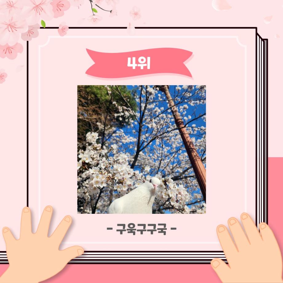 본문 시작 홈으로 포토갤러리 학생위원회 개요 학생위원회 소개 공지사항 활동결과 홈페이지가이드 포토갤러리 페이스북 트위터 프린트 [꽃피는 위원회] 벚꽃사진 콘테스트 결과 학생처 1777 2024-05-07 2024학년도 벚꽃사진 콘테스트 선정 결과 안내 1. 접수: 2024.04.02(화)~12(금) 2. 참가인원 : 99명 3. 선정 - 1차선정 : 17개 작품 선정(꽃피는 위원회 선정) - 2차(최종) 선정 : 10개 작품 선정(순위 결정) * 구성원 선정참여 :171명 참여 목록 이전[생각하는 위원회] 해먹존 해먹설치 및 환경 정리 다음 [꽃피는 위원회] 행운을 가져다주는 책갈피 만들기 담당부서 : 장학복지팀 담당자 : - 연락처 : 043-649-1142 최종수정일 : 2024-10-26 만족도조사 만족도 조사 이 페이지에서 제공하는 정보에 대하여 만족하시나요? 매우만족 만족 보통 불만족 매우불만족