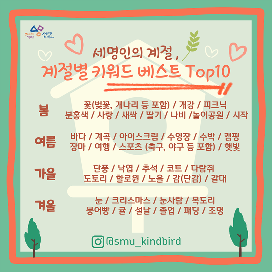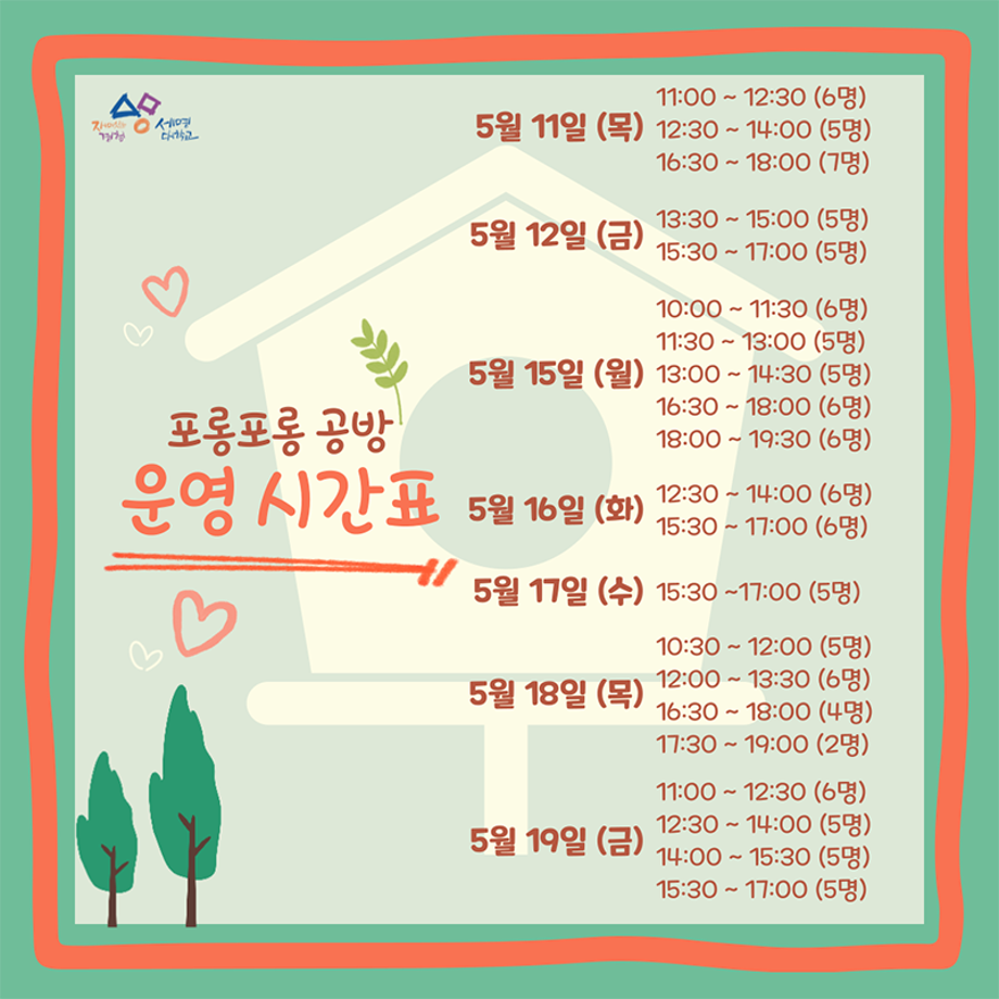 본문 시작 홈으로 공지사항 학생위원회 개요 학생위원회 소개 공지사항 활동결과 홈페이지가이드 프로그램 계획 프로그램 계획 세명대학교 공지사항 프로그램 계획 페이스북 트위터 프린트 [착한 위원회] 포롱포롱 공방 체험자 모집 학생처 1588 2023-05-11 [착한 위원회] 포롱포롱 공방 체험자 모집 운영기간 : 5/11(목) ~19(금) 신청방법 : 착한 위원회 인스타그램 DM신청 목록 이전[착한 위원회] '세명인의 계절을 들려줘' 설문조사 시행 다음 [ 용감한 위원회 ] 참깨마켓 운영 담당부서 : 장학복지팀 담당자 : - 연락처 : 043-649-1142 최종수정일 : 2024-10-26 만족도조사 만족도 조사 이 페이지에서 제공하는 정보에 대하여 만족하시나요? 매우만족 만족 보통 불만족 매우불만족