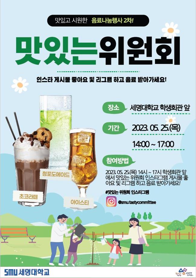 저희 맛있는 위원회가 제 2차 음료 나눔 행사를 🤍5월 25일 목요일🤍 에 진행하려고 합니다