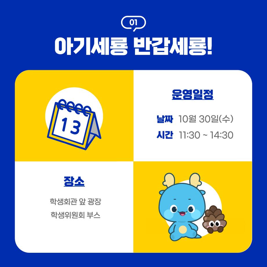 어느덧 날씨가 쌀쌀해졌는데요~ 저희 따뜻한 위원회가 귀여워진 아기 세룡이와 함께 여러분의 마음을 따뜻하게 녹여줄 행사를 준비했습니다!
