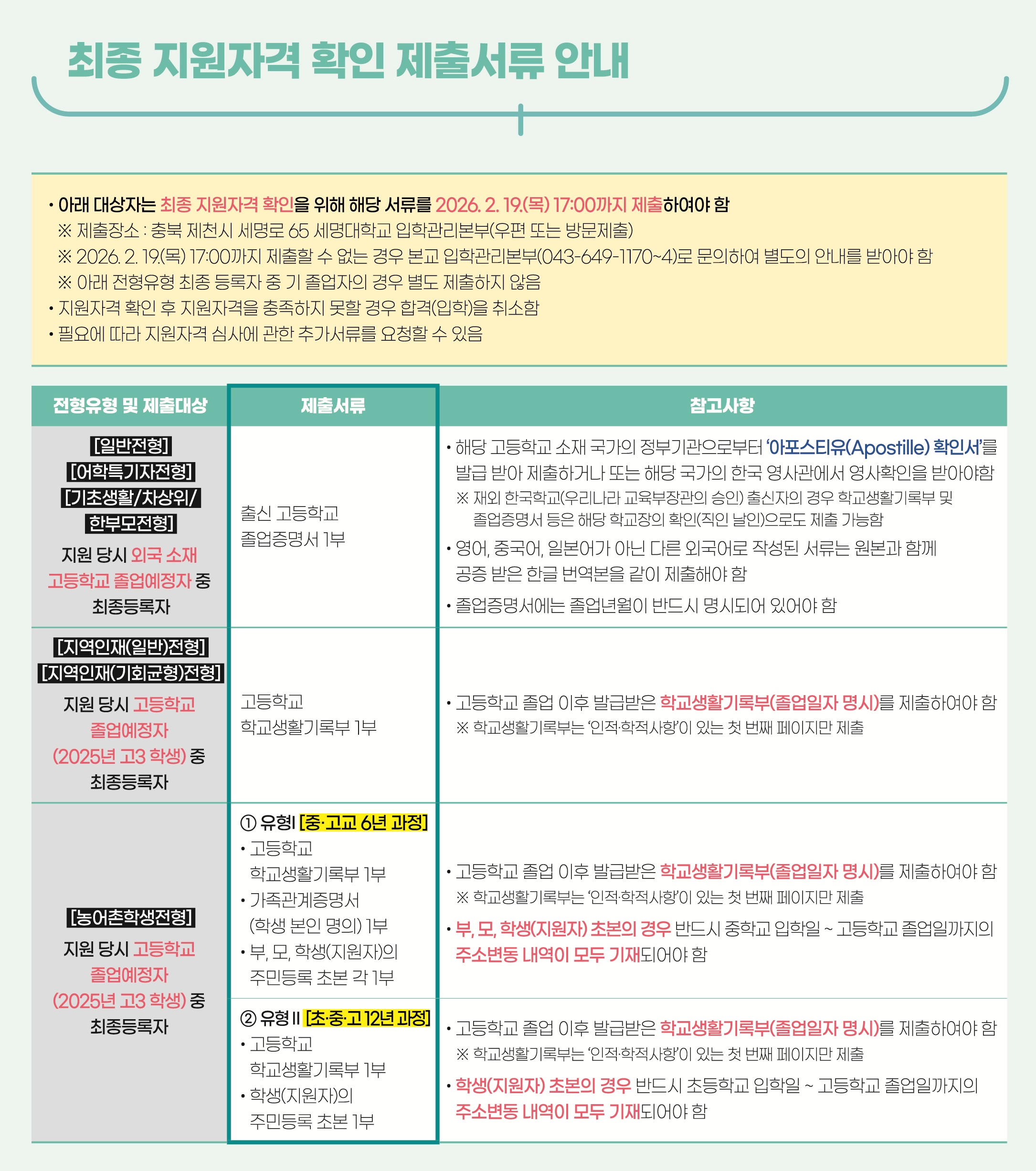 [2026 수시모집] 최종등록자 제출서류 안내